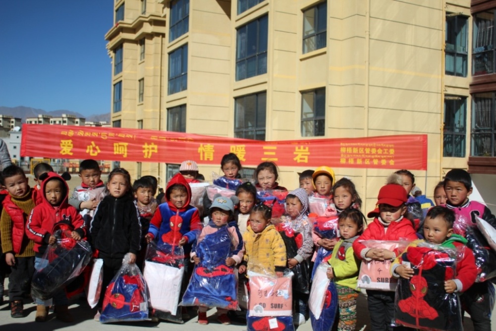为了让“三岩”片区搬迁群众在过渡期生活有保障,让孩子们温暖过冬,12月7日至8日,柳梧新区扶贫办、财政局、柳梧街道办、康乐居委会、工青妇办及社会事业局工作人员前往康乐居委会,为曲水、昌都“三岩”建档立卡搬迁群众送去米、面、油、糌粑、砖茶及棉衣、棉裤等生活物资。