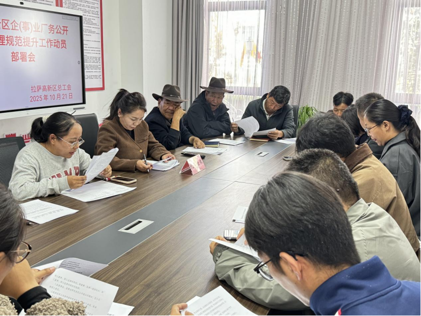 近日,拉萨高新区总工会召开厂务公开民主管理规范提升部署会,基层企事业单位党组织负责人、工会主席及骨干参会。会议书面传达学习相关实施方案,解读企事业单位民主管理工作意见,明确其对保障职工“四权”的作用。总工会负责人指出当前公开、程序、反馈等问题,强调其能凝聚合力,要求各单位借规范提升推动企业高质量发展。