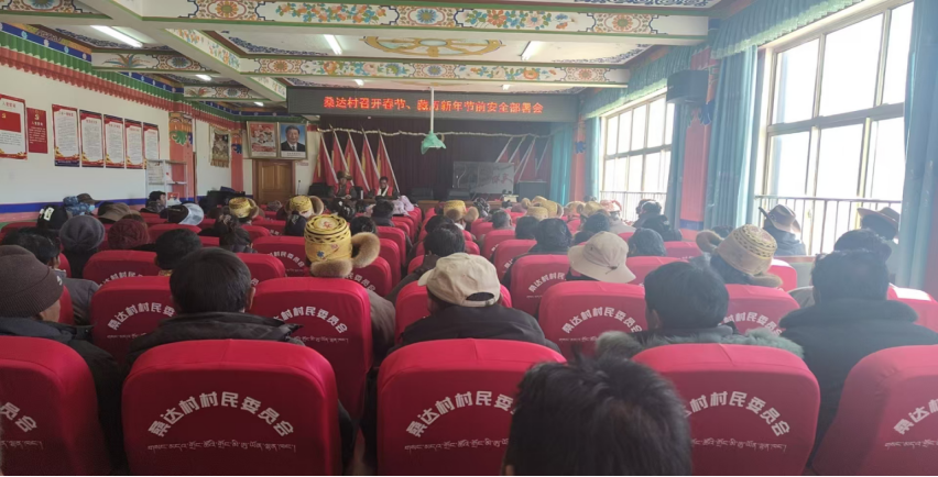 2月2日,拉萨高新区(柳梧新区)桑达村召开春节、藏历新年维稳工作部署会,村“两委”班子、驻村工作队及群众等100余人参会。会议强调节日期间烟花爆竹燃放、用火用电等安全事项,要求村干部提高警觉、严格值守,发动联户长等力量入户排查消防安全、普及安全知识。同时,组织党员和群众志愿者开展节前环境卫生大整治,营造整洁喜庆的节日氛围,全力保障群众平安过节。