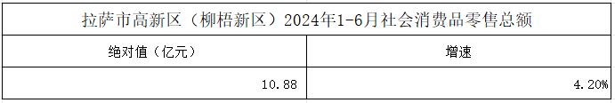 拉萨市高新区(柳梧新区)2024年1-6月社会消费品零售总额