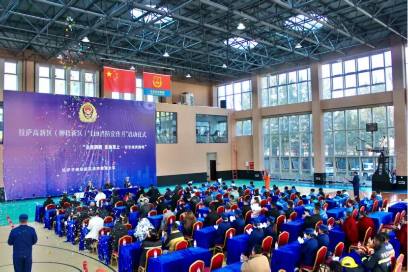 2025年11月9日是第34个全国消防日,活动主题为“全民消防,生命至上 —— 安全用火用电”。为深入贯彻落实习近平总书记关于应急管理的重要论述及消防工作重要指示批示精神,切实筑牢辖区消防安全防线,全面提升群众消防安全意识与自防自救能力,近日,拉萨高新区(柳梧新区)2025年“119”消防宣传月活动启动仪式在柳梧新区消防救援大队隆重举行。高新区(柳梧新区)党工委委员、二级调研员巴桑扎登出席仪式并致辞,新区消防救援大队、消安委各成员单位相关负责人,以及学校师生、企事业单位员工等120余人齐聚现场,共同见证宣传月系列活动正式拉开帷幕。