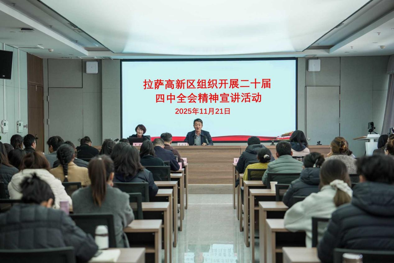 为深入学习贯彻党的二十届四中全会精神,切实将全体干部职工的思想和行动统一到党中央关于“十五五”新时期经济社会发展的战略部署要求上来,11月21日,拉萨高新区(柳梧新区)管委会副主任夏海勇主持召开了党的二十届四中全会精神专题宣讲会。此次会议特邀西藏大学马克思主义学院党委书记、副院长李丹教授进行专题授课,管委会90余干部职工参会,旨在通过理论学习强化思想引领,借助精神宣讲凝聚奋进力量。